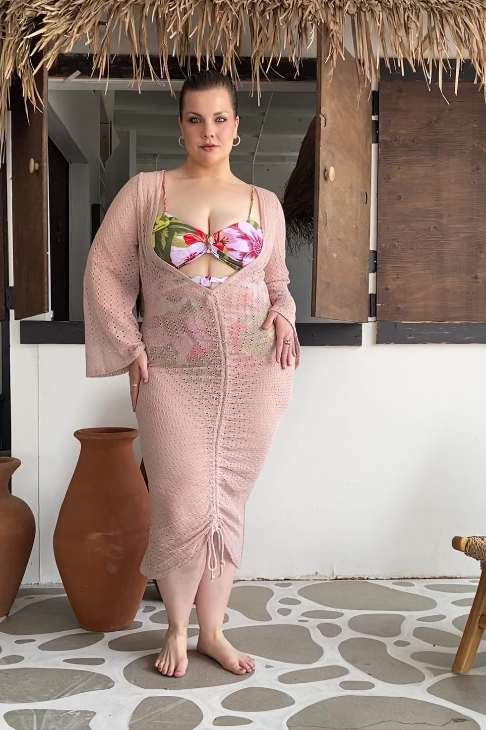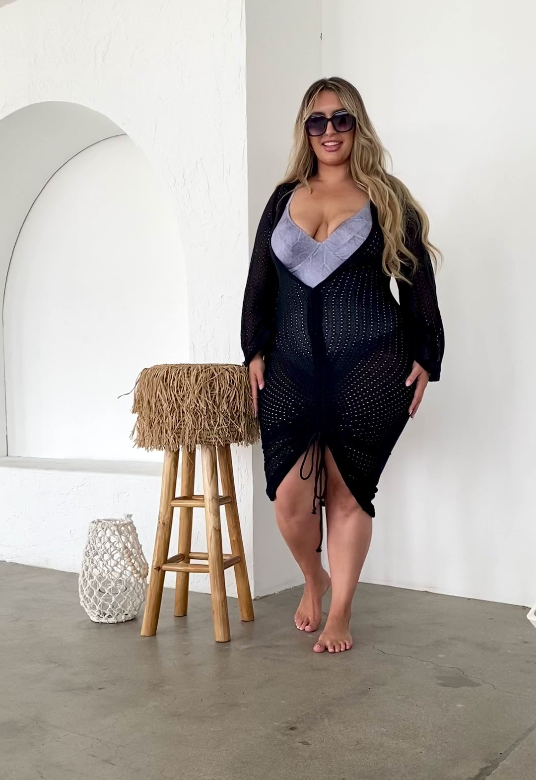 Knit Cinch Tie Coverup Dress (2 colors)