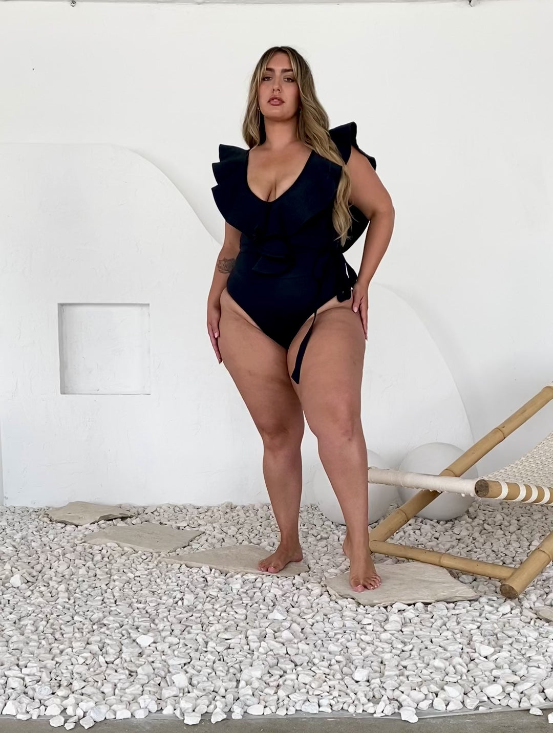 Ruffled Open Back Side Tie One Piece Swimsuit